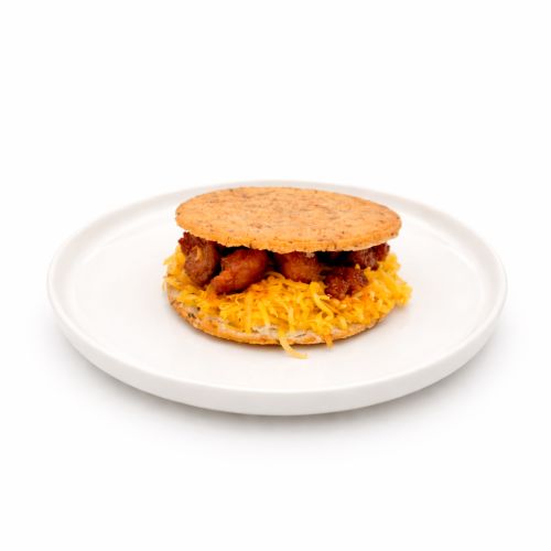 Arepa Tostada Con Cochino Frito, Queso Amarillo Y Salsa Bbq Ahumada Casera